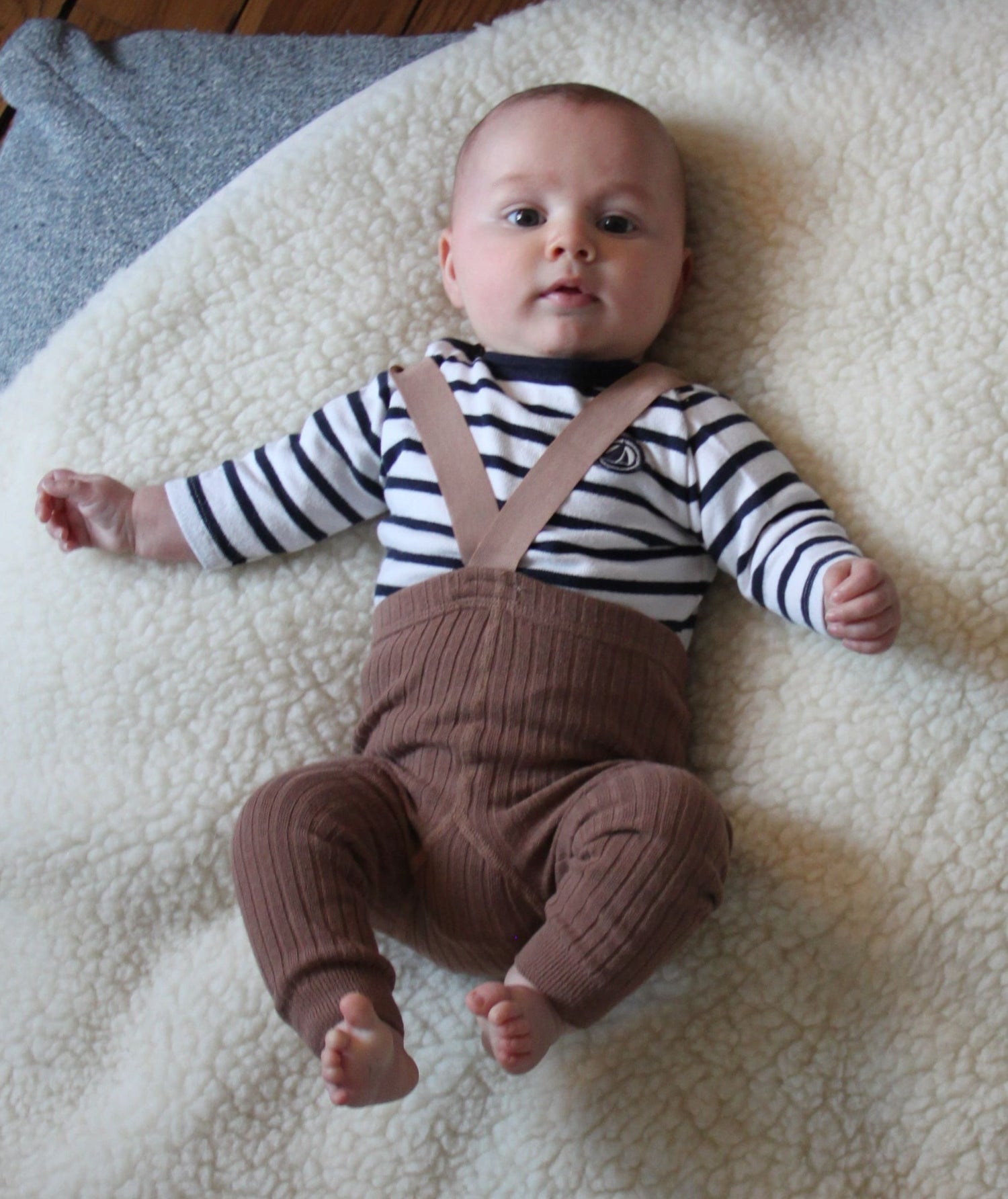 Les bretelles maintiennent les collants bien en place, peu importe les jeux et les galipettes. Un vêtement qui suit le rythme des parents actifs et de leurs petits.